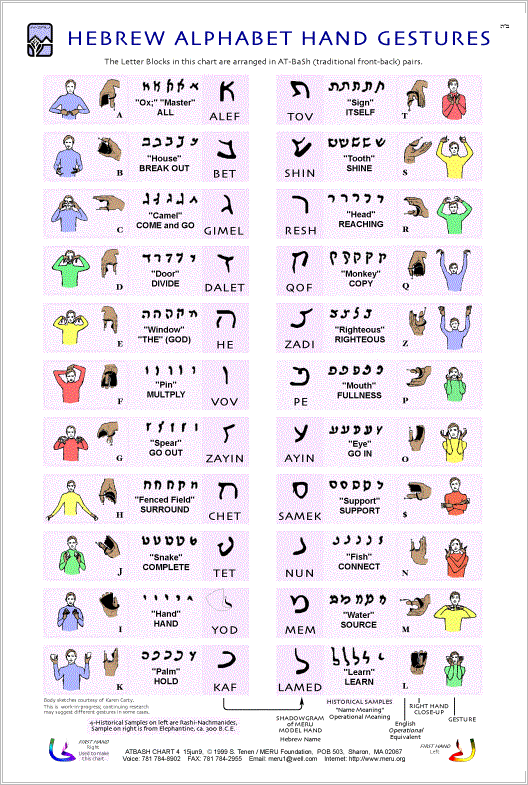 making gestures that produced all of the letters of the Hebrew, Greek, and